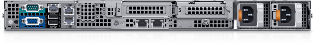 A beépített 2x 1GbE RJ45 hálózati portok elegendő sávszélességet biztosítanak irodai és kisvállalati környezetben. Az iDRAC Enterprise dedikált portja teljes körű távoli menedzsmentet tesz lehetővé, beleértve a KVM over IP-t, virtuális médiát és részletes monitorozást.